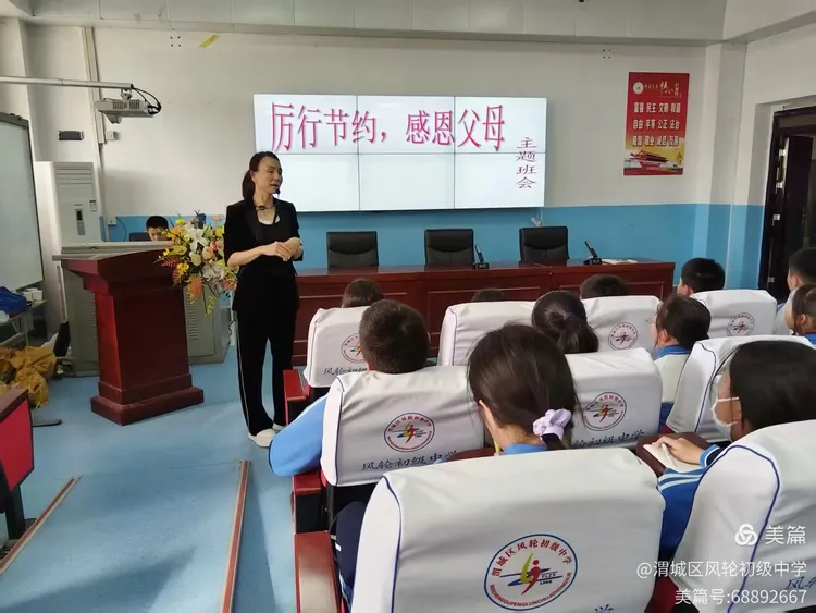 | 2025年4月7日下午,渭城区风轮初级中学七年级5班在王珍老师的组织下,开展了一场主题为“厉行节约,感恩父母”的道德讲堂。活动通过互动讨论、故事分享和情感引导,深化学生对勤俭美德与家庭责任的理解,为青少年价值观教育注入生动实践。 活动伊始,王老师抛出发人深省的问题:“你是否想过父母的钱是如何挣来的?”通过“学生以学业换取父母辛劳”的案例,她引导学生思考物质背后的汗水与付出。 王老师结合“光盘行动”与 学生们通过朗读毛泽东勤俭故事,进一步领悟艰苦奋斗精神的时代意义。 王老师讲述《请吃一碗面》的故事,借平凡小事揭示父母无私之爱。她以“母亲十年如一日照顾子女却反遭顶撞”为例,引导学生反思言语伤害对亲情的侵蚀。“饭凉了,其实是心凉了”的比喻令学生动容。 互动环节中,同学们踊跃分享与父母的相处点滴,认识到“父母日渐衰老,矛盾背后是期待与失落”。王老师呼吁:“用笑容替代争执,用理解化解唠叨”,并倡导从今日起“管住情绪,以行动回馈父母”。 活动尾声,学生们在感动与反思中立志成为勤俭节约的实践者与家庭和谐的守护者。王老师总结道:“节约是尊重劳动,感恩是守护亲情,两者皆是人生必修课。”本次道德讲堂不仅强化了学生的价值观塑造,更架起了家校共育的桥梁,为培养有责任、有温度的新时代少年注入力量。 |