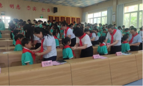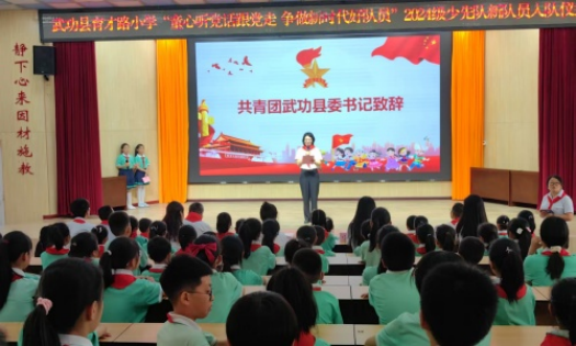 2025年5月22日,武功县育才路小学在充分告知一年级学生家长并赢得理解支持的基础上,综合一年级预备队员各方面表现与评价,举行了2024级少先队新队员入队仪式,共青团武功县委书记丁幸芝应邀出席。 入队仪式在《出旗曲》激昂的旋律声中拉开帷幕,全体与会师生高唱《我们是共产主义接班人》;党支部副书记吴粉利宣读《关于组建一年级少先队组织的决定》,党支部组织委员、副校长张飞宣读《关于同意接收2024级李嘉萱等85名同学为中国少年先锋队队员的决定》,党支部宣传委员、副校长杨谋会宣读《关于聘请一年级中队辅导员的决定》;与会领导、辅导员代表和老队员代表为85名新队员佩戴鲜艳的红领巾;大队长郭佳玉带领新老队员庄严宣誓,新老队员代表热情发言;大队辅导员孙美婕老师带领全体队员激昂呼号;仪式在《退旗曲》中圆满结束。 仪式中,共青团武功县委书记丁幸芝为新聘中队辅导员颁发聘书,并在致辞中希望全体少先队员知道“红领巾”所蕴含的荣耀和责任,明确“少先队员”所代表的称号和榜样,了解“少先队”所承载的组织和家园,听党话,跟党走,争做新时代好队员;学校党支部书记、校长、少工委主任许闪鹏为新建中队授旗,希望广大少先队员要以“立德、明志、崇实、担当”的校训为指引,向着“童心听党话跟党走 争做新时代好队员”的方向,努力学习,积极进取,做有理想、有本领、有担当的社会主义建设者和接班人。 星星火炬,指引前行。相信在中国共产党的领导下,在星星火炬的指引中,全体新队员将以更加坚定的步伐,肩负起新时代的使命,立德明志、崇实担当,为全面建设社会主义现代化强国、实现中华民族伟大复兴中国梦积蓄力量、扬帆起航! |