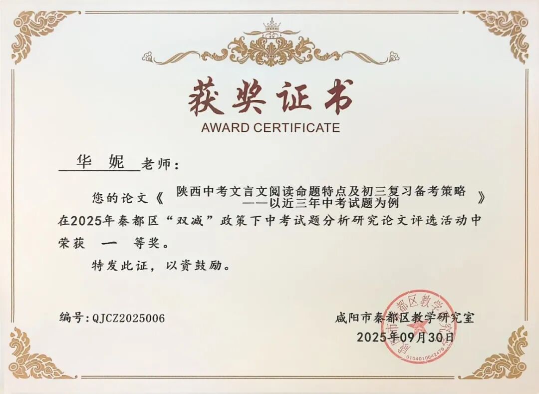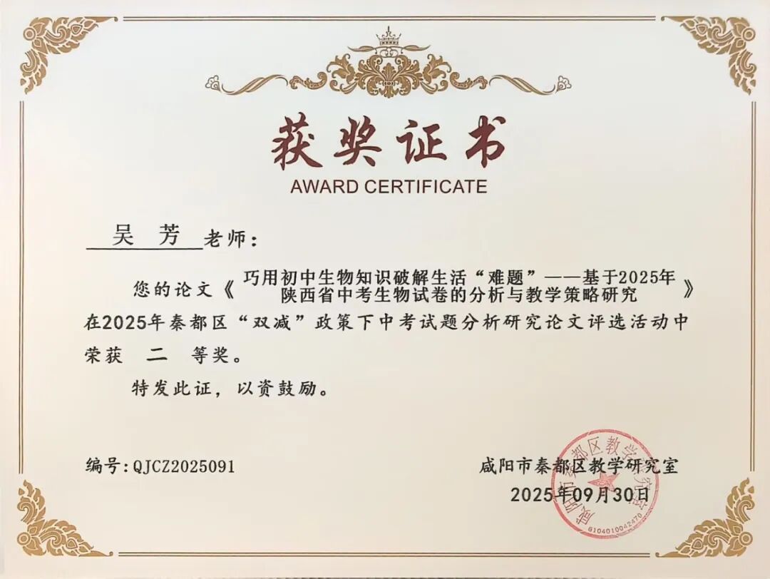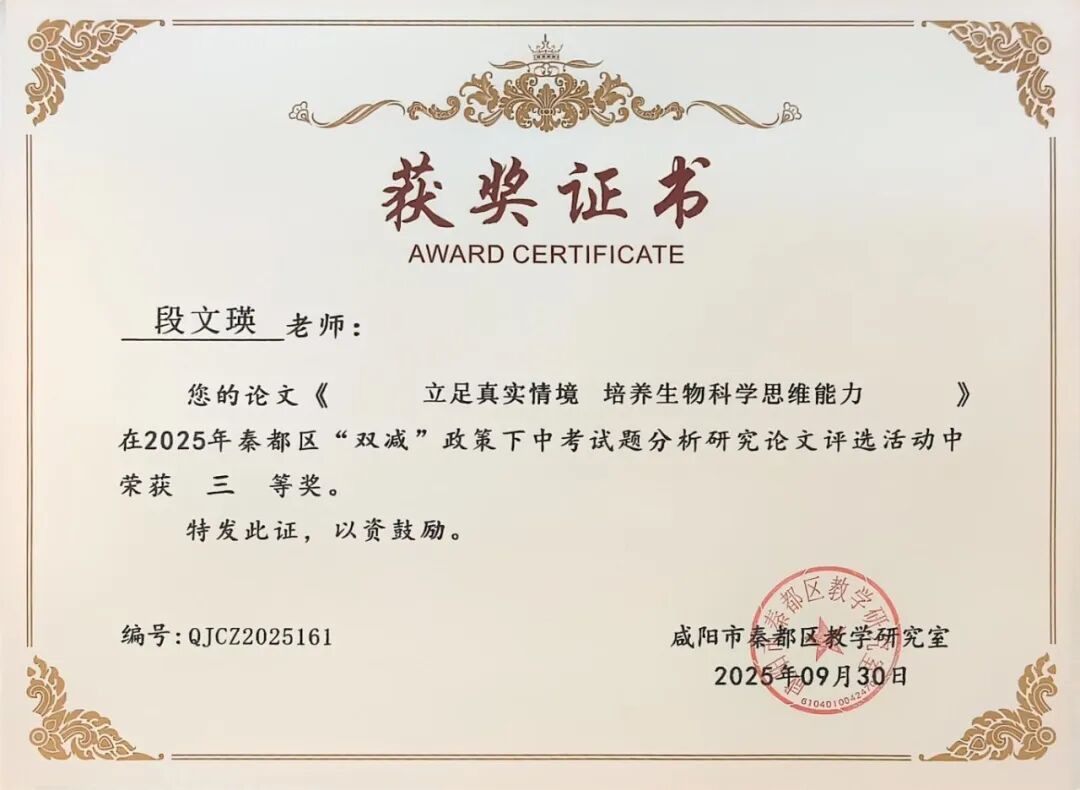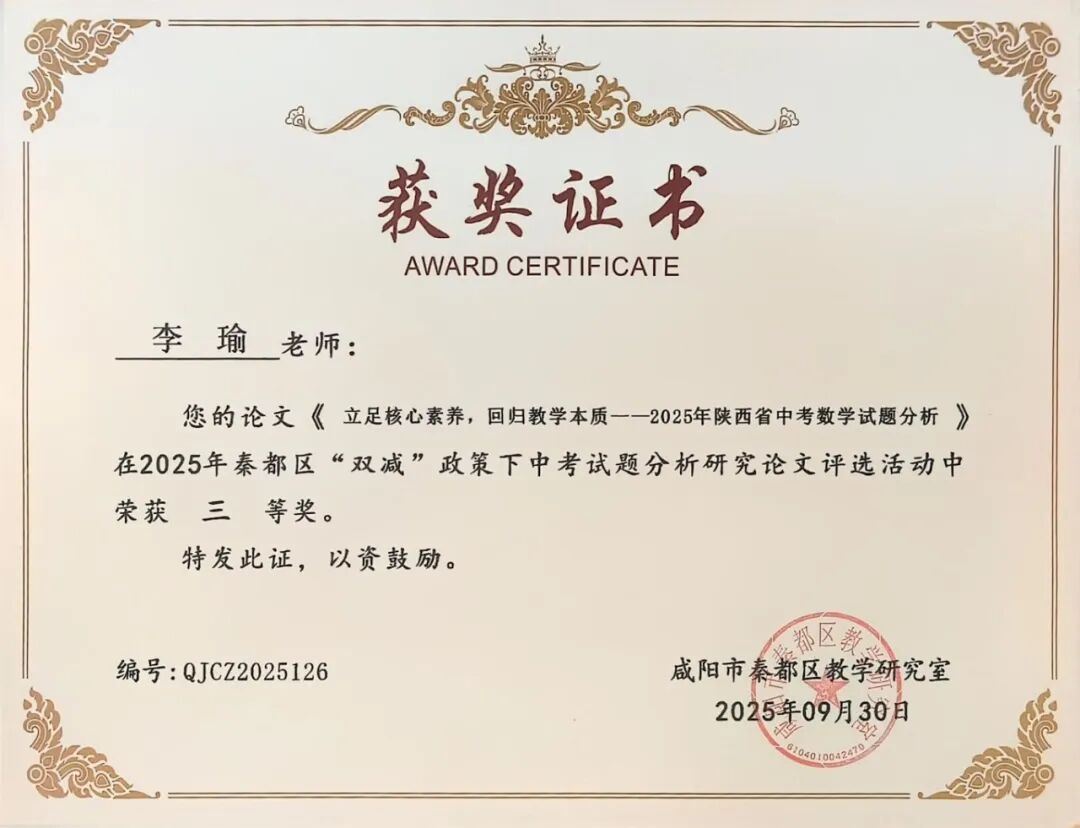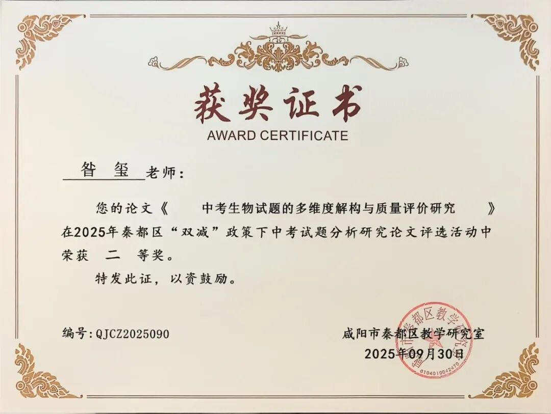 | 咸阳市秦都区天王学校17名教师在2025年秦都区“双减”政策下中考试题分析研究论文评选中斩获一二三等奖 近日,2025年秦都区“双减”政策下中考试题分析研究论文评选活动结果正式揭晓。在此次评选中,我校17名教师凭借深厚的教研功底、对“双减”政策的精准把握以及对中考试题的深入剖析,撰写的论文脱颖而出,分别荣获一、二、三等奖,充分展现了天王学校教师在教育教学研究领域的卓越实力与不懈追求! 深耕教研 引领方向 在本次评选中,姚敏、何丽霞、李萌、华妮、任凤老师的论文凭借独特的研究视角、扎实的分析过程和极具实践指导意义的结论,成功斩获一等奖。他们的论文紧密围绕“双减”政策要求,深入挖掘中考试题背后的教育理念与考查方向,不仅为一线教师精准把握中考命题趋势、优化教学策略提供了宝贵参考,更为推动“双减”背景下我校初中教育教学质量的提升注入了强劲动力。 潜心钻研 成果显著 任飞、李娅会、昝玺、吴芳、巩楠、李华老师的论文同样表现亮眼,荣获二等奖。这些论文聚焦“双减”政策下中考试题的变化特点,结合教学实际案例,对试题的考查重点、难易程度以及对学生核心素养的培养导向进行了细致分析,为教师调整教学方法、减轻学生过重课业负担、提升课堂教学效率提供了切实可行的思路,彰显了我校教师潜心钻研、求真务实的教研态度。 聚焦素养 助力教学 段文瑛、张斌、刘倩、成淑绸、李瑜、何敏婷老师的论文荣获三等奖。这些论文同样兼具理论深度与实践价值,为我校初中各学科教学与中考备考工作提供了有力支持。 此次论文评选活动,不仅是对天王学校教师教研成果的一次集中展示与肯定,更是我校推动“双减”政策落地见效、深化教育教学改革的重要举措。希望获奖教师珍惜荣誉、再接再厉,充分发挥示范引领作用,带动更多教师投身教育教学研究;也期待广大教师以获奖教师为榜样,立足教学实际,积极探索“双减”政策下教育教学的新方法、新思路,为秦都区教育事业的高质量发展贡献更多智慧与力量! |