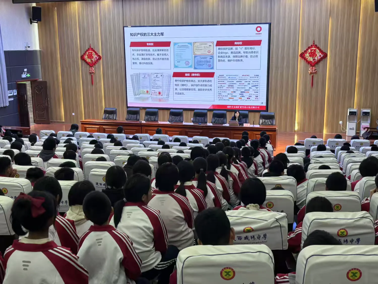 活动启幕 为激发青少年科技创新意识,普及知识产权保护理念,2025年10月22日,陕西咸阳中学初中部特邀咸阳非金属矿研究设计院有限公司教授级高级工程师、秦都英才王鸽教授,为全校师生带来了一场题为《知识产权点亮生活与未来》的精彩讲座。本次活动由初中部政教主任赵亚群主持,咸阳非金属矿研究设计院副院长曹帅及初中部德育副校长李龙共同出席,与同学们一起聆听创新之声,共探知识产权的奥秘。 专家引领 讲座中,王鸽教授结合自身在非金属矿物功能材料领域的丰富科研经验,以生动的生活实例切入,深入浅出地讲解了知识产权的内涵与价值。从手机芯片中的数万项专利,到早餐包装上的商标标识;从学生创作的微小说、手抄报,到校园发明获得国家专利的真实案例——王教授用贴近学生认知的内容,引导大家认识到知识产权无处不在,保护创新就是守护未来。 创新启迪 在互动与启发中,同学们了解到专利、商标、著作权如何成为创新者的"保护伞",如何推动社会进步与国家发展。王教授还特别分享了中学生发明"自动玩具收纳机器人""智能节水龙头"等成功案例,激励大家勇于观察、敢于实践、勤于记录,让创意在知识产权的护航下"飞起来"。 荣耀时刻 仪式环节,李校长代表学校为王鸽教授颁发聘书,正式聘请其担任陕西咸阳中学初中部科学副校长。这一重要举措标志着学校在推进科技创新教育方面迈出了坚实步伐,将为学生们搭建更广阔的科学实践平台。 总结展望 讲座尾声,赵主任进行总结讲话,她强调:"今天的讲座内容详实、通俗易懂。王教授结合自身科研经历,从知识产权概念、生活应用,到保护方法与未来趋势,为我们系统梳理了知识,更让我们明白青少年参与创新实践的重要意义。希望大家以此次讲座为契机,把尊重知识产权的意识融入日常,拒绝抄袭与盗版;在学习中多观察、多思考,让创新理念生根发芽,努力成长为有科学素养、有责任担当的新时代青少年。" 此次"科技进校园"活动不仅拓宽了学生的视野,更在年轻的心中播下了尊重知识、崇尚创新、保护产权的种子。陕西咸阳中学将持续推进科技教育,助力每一位学子在创新的道路上——向光而行,未来可期! |