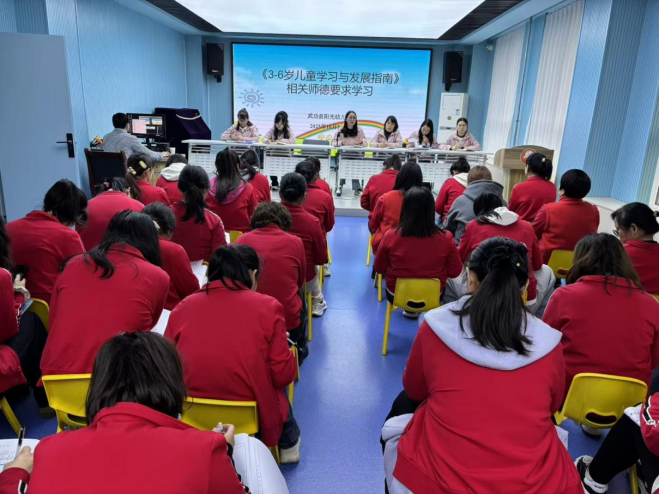 | 学《指南》明师德方向,传沟通展师者风采——武功县阳光幼儿园师德师风实践活动 为深化幼儿园师德师风建设,推动教师将《3-6岁儿童学习与发展指南》的教育理念转化为师德实践,同步提升师幼、家园沟通等专业能力。近日,武功县阳光幼儿园以“学《指南》明师德,传智慧促沟通”为主题,开展师德师风专题系列活动。 学《指南》,深悟师德内涵 全体教师在副园长党宁霞的带领下围绕《指南》蕴含的师德内核展开集中学习。从教育实践维度,教师们进一步明晰师德的三大核心指向:其一,坚守“科学育人”底线,尊重幼儿身心发展规律——坚决摒弃“超前教育”“小学化”误区,不贴标签、不做比较,充分保障幼儿自主发展权利,悉心呵护其自尊心与自信心;其二,践行“尊重关爱”核心,凸显幼儿主体地位——主动接纳幼儿个体差异,在游戏、生活中给予适当支持,尊重幼儿的自主选择与真实表达,敏锐捕捉情感需求,以耐心温和的态度做好情绪疏导与行为引导;其三,落实“专业自律”要求,规范日常教育行为——将幼儿安全置于一日活动首位,严格履行监护职责,以游戏为基本活动形式,通过高质量师幼互动,潜移默化支持幼儿全面发展。 共分享,传递沟通智慧 在“阳光最美教师经验分享”环节,4位教师结合自己的一线教育案例,分别从师幼沟通、家园沟通等维度分享可复制、可落地的实践技巧。 本次专题活动,既让老师们系统掌握了《指南》与师德实践的内在关联,更通过案例分享将抽象的师德要求,转化为可操作、可借鉴的沟通方法与教育行为。老师们纷纷表示,今后将会以《指南》为行动纲领,守牢师德初心,用更专业的教育判断、更有温度的沟通方式,陪伴每一位幼儿健康、快乐成长,努力成为有教育情怀、有责任担当的新时代幼教工作者。 |