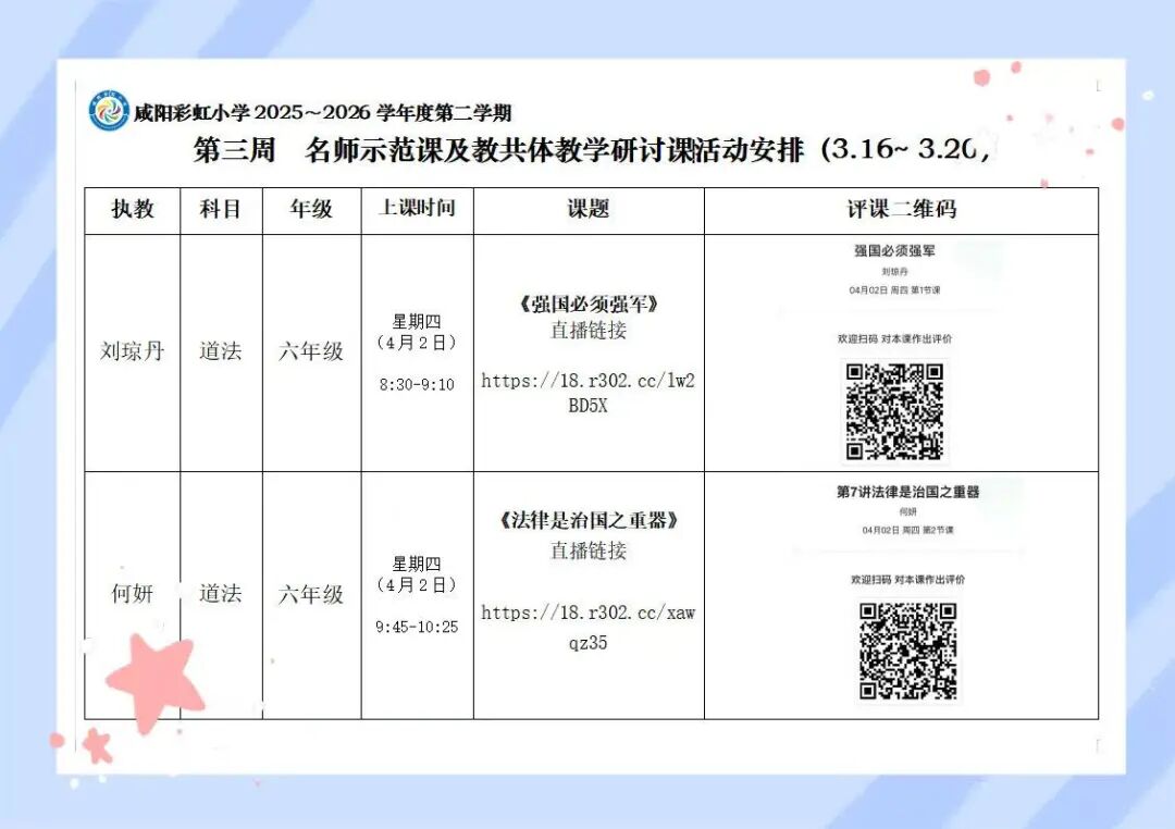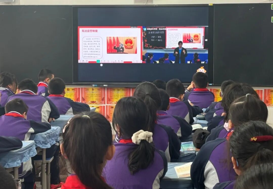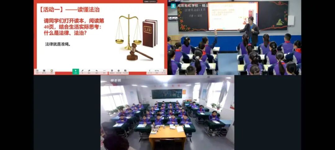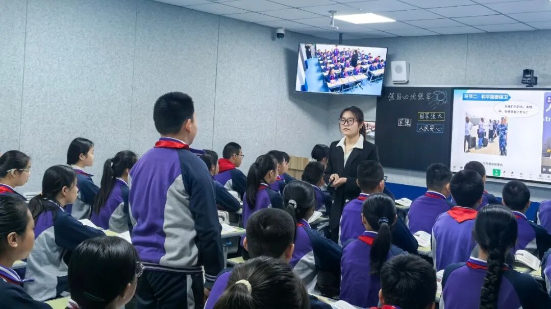 | 4月2日上午,咸阳彩虹小学教育共同体思政读本教学研讨活动如约而至。作为核心校,咸阳彩虹小学依托希沃平台,将刘琼丹、何妍两位老师执教的六年级思政课,同步直播至教共体分校马庄中心小学、马庄小雅小学、羊村庙小学,以及友好结对学校彬州市紫薇学校。四校师生跨越时空,同上一节思政课,共研一堂立德课。 刘琼丹老师执教的《强国必须强军》一课,以历史为镜,以现实为基。从近代屈辱的警醒到也门撤侨的震撼,孩子们在时空对照中读懂“强国必须强军”的深刻逻辑;从新时代强军目标的召唤到人民军队的忠诚担当,孩子们在思辨感悟中厚植拥军爱国的真挚情怀。课堂之上,家国情怀与使命担当同频共振。 何妍老师执教的《法律是治国之重器》一课,以“法”字溯源为始,带孩子们走进法治的殿堂。从生活案例到宪法根本,从行为边界到法治精神,学生在情境体验中感知法律与生活的息息相关,在互动探究中明晰尊法学法守法用法的责任担当。课堂将宏大主题化为可感可知的成长体验,让法治意识在童心中生根发芽。 两节课,两位老师,用“32155”课堂模式诠释了思政课应有的模样——既有生活味,又有政治味;既有情境感,更有使命感。屏幕两端,四校师生同频共振;云端之上,思政课堂共话成长。 课后,教育共同体各校通过线上平台开展了深入的研讨交流。大家一致认为:思政课不是简单的说教,而是用真理的力量感召人,用情感的温度打动人。用好《习近平新时代中国特色社会主义思想学生读本》,是将理论转化为生动的故事、鲜活的案例、真切的情怀。 四校教师在云端共研中碰撞思想、互鉴经验,在深度对话中凝聚共识、共促成长。教共体同步教研,让优质资源辐射更广,让思政课堂在共研中更具深度。 课堂方寸地,皆是深耕处。当思政课成为学生喜爱的课、终身受益的课,立德树人的根本任务便有了最坚实的落点。今后,彩虹小学教育共同体将继续深耕“32155”课堂改革,且行且思,且悟且进,让思政课在共研共享中绽放更加绚烂的光芒。 来源:咸阳彩虹小学 |